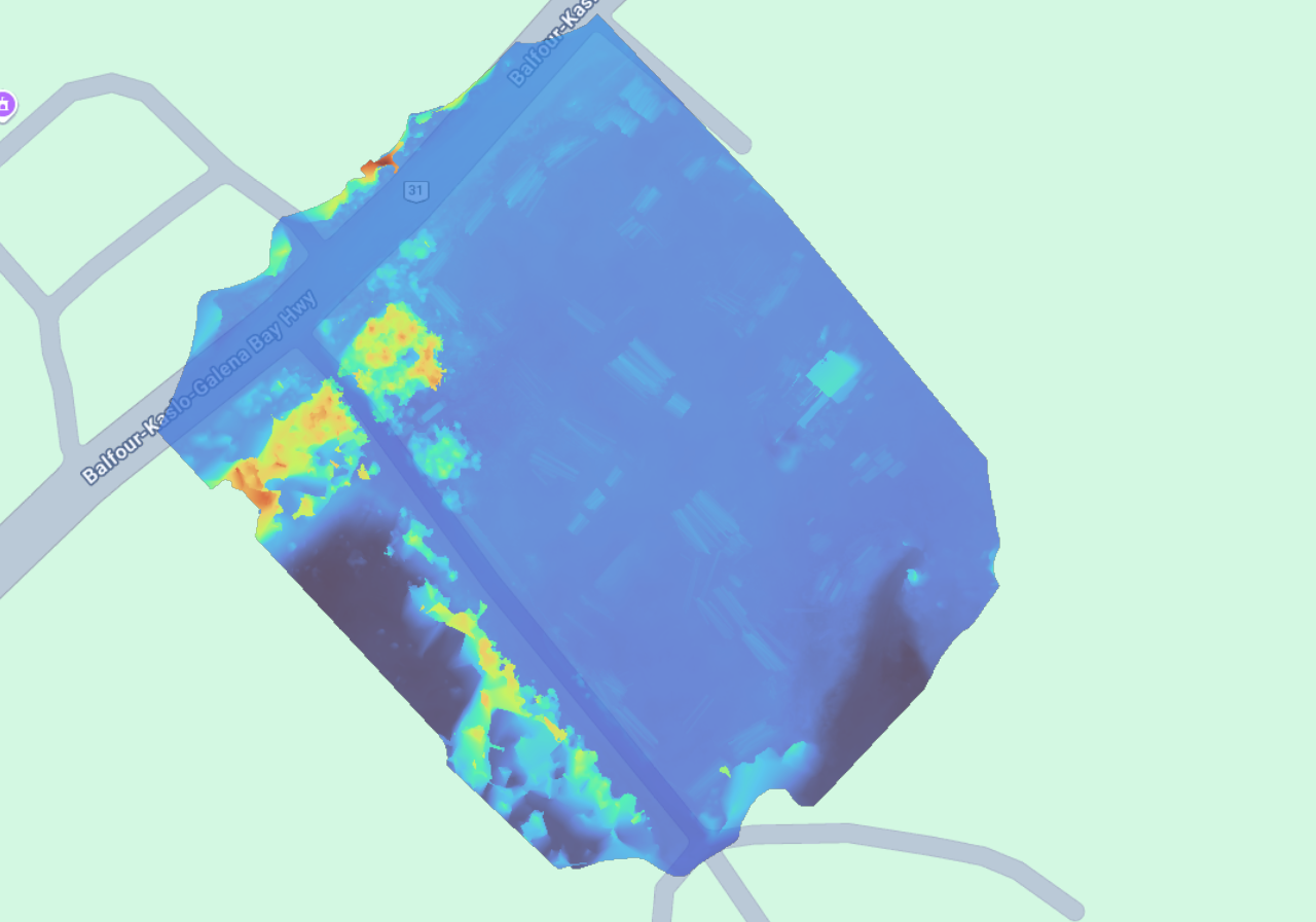 This timber yard survey was conducted using RTK-enabled aerial mapping to generate high-resolution orthomosaics, digital surface models (DSM), and volumetric measurements of log stockpiles.